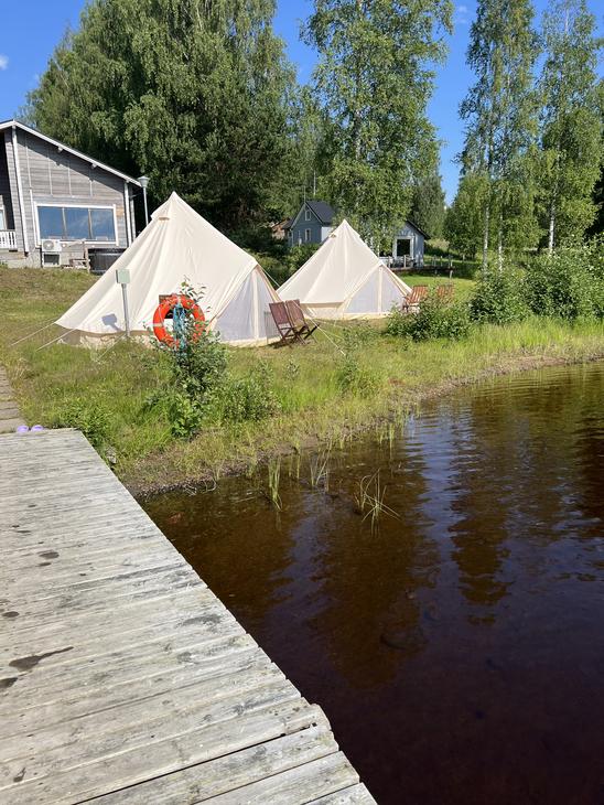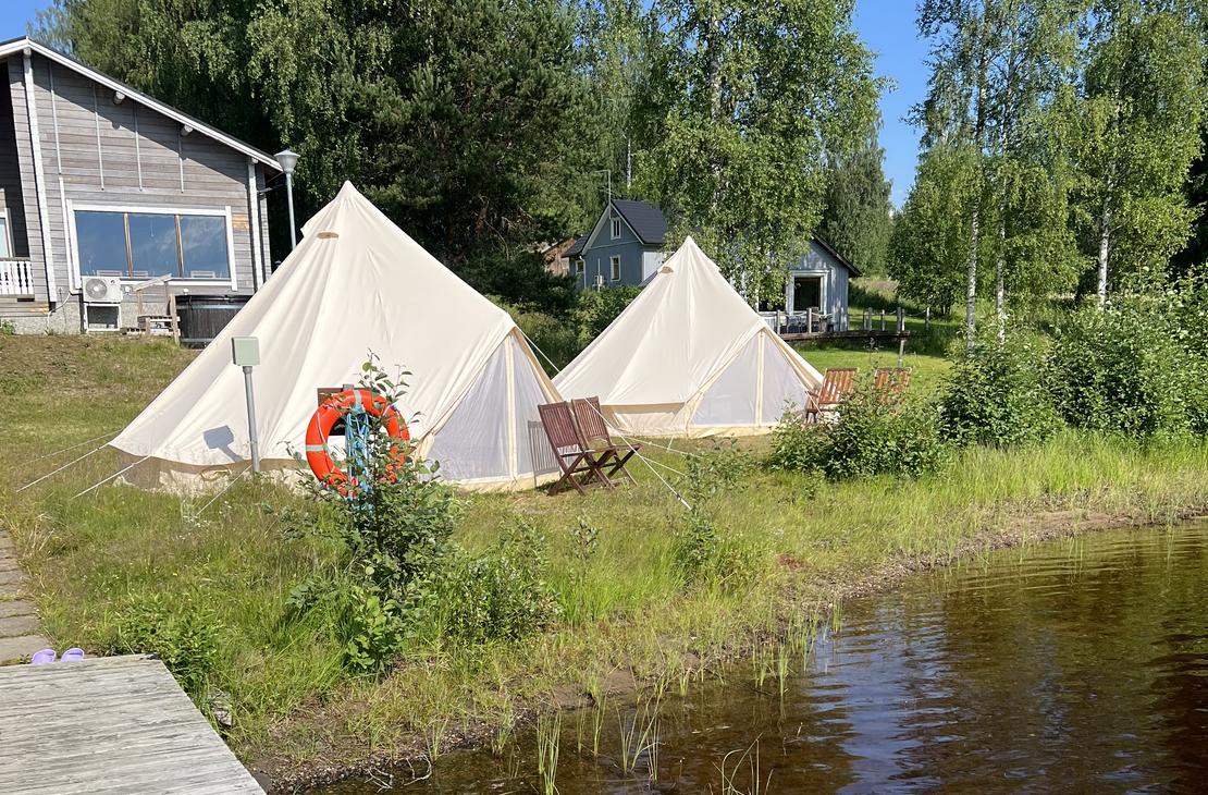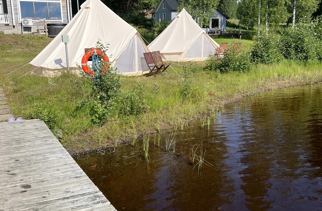 Teltat sijaitsevat leirintäalueellamme eri sijainneilla, osa järven rannalla, osa järvinäkymällä. Osa teltoista on sijoitettu vierekkäin, osa on yksityisempiä. Voit jättää sijainnista toiveen varauksen lisätietoihin halutessasi, pyrimme huomioimaan toiveet mahdollisuuksien mukaan.