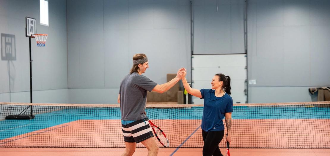 Voit pelata hallissa vaikka tennistä, sulkapalloa, lentopalloa tai sählyä.
