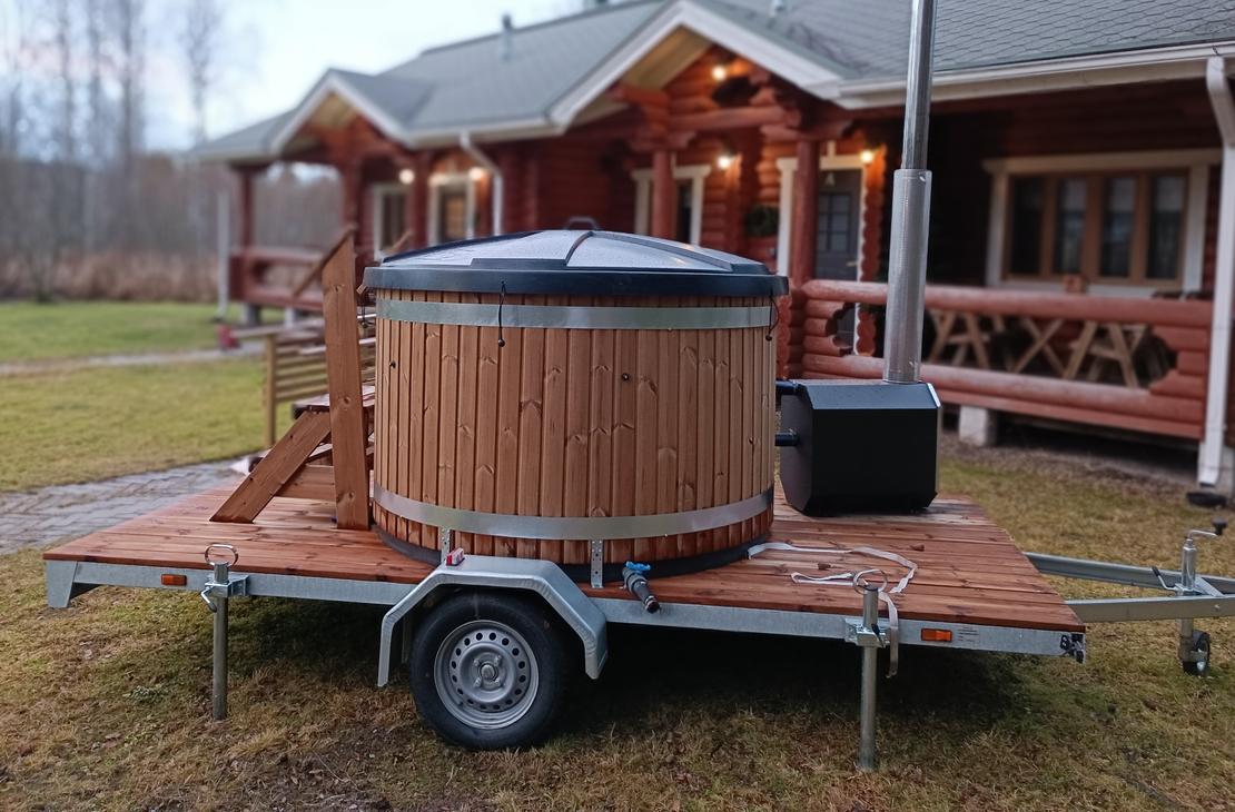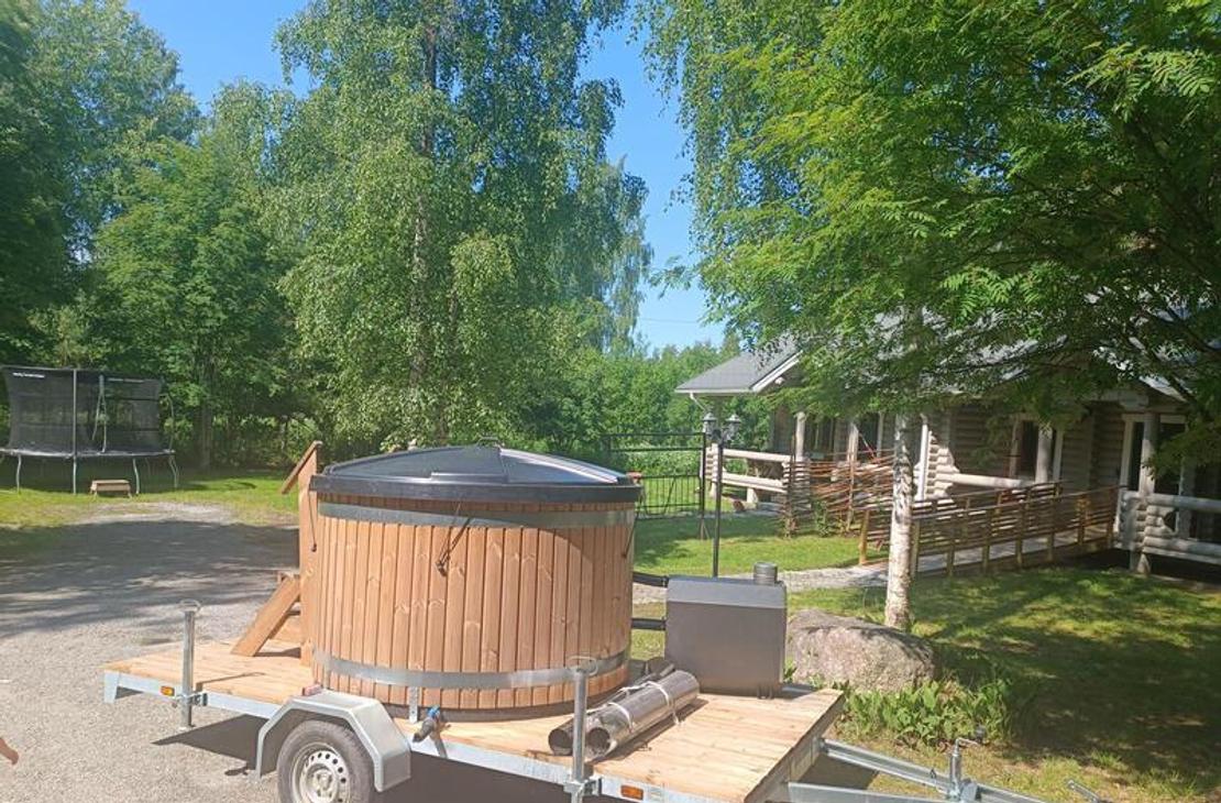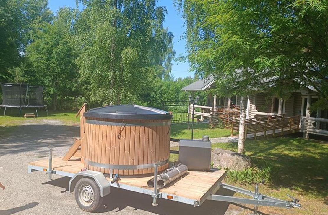 Vuokrattavissa 6 hengen paljukärry kuumalle tai kylmälle kylvylle. Kärryn voi vetää henkilöautolla oman majoituskohteen pihaan.
