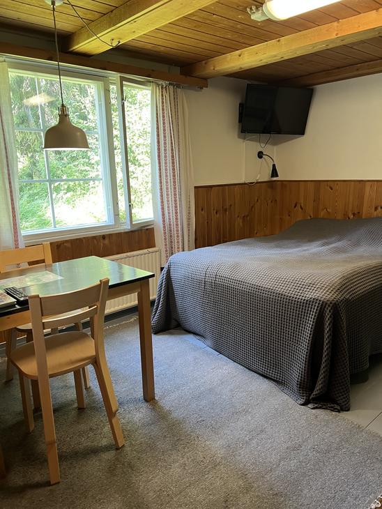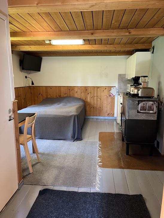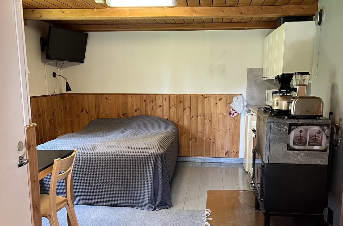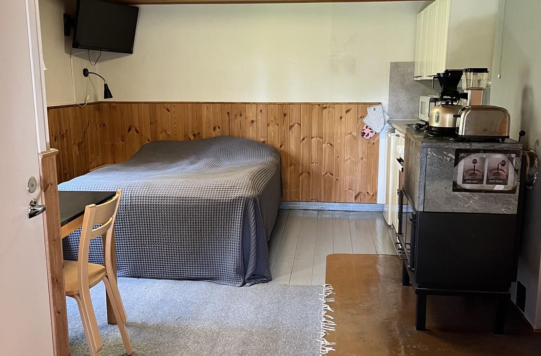 - Parivuode 160 cm, petivaatteet valmiina mökissä (2 x tyyny ja 2 x peitto