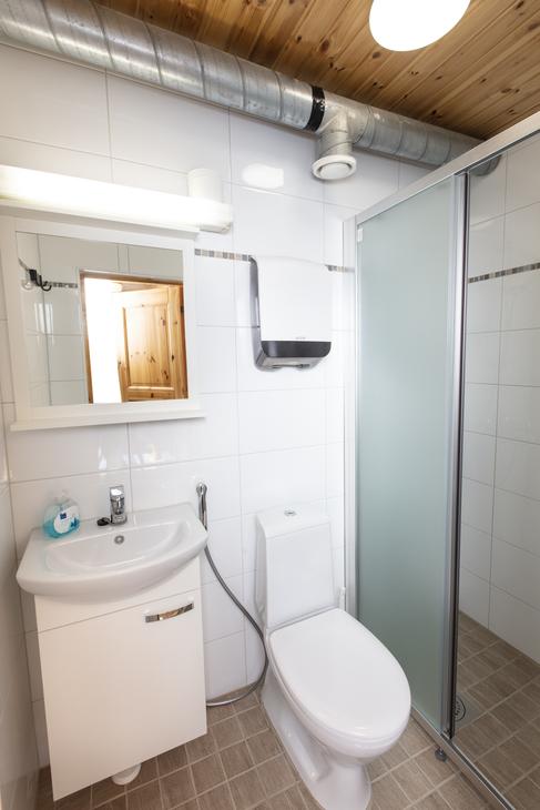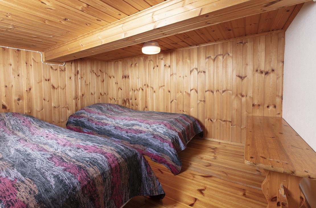 Edullinen vaihtoehto lomakeskuksen Pihatalossa. Alakerrassa kaksi erillistä 80 cm sänkyä ja parvella runkopatjavuoteet kahdelle henkilölle. Huoneessa oma WC ja suihku sekä jääkaappi, vedenkeitin ja mukit. Yhteiskeittiö käytettävissä. Kylpyhuone remontoitu 2019.