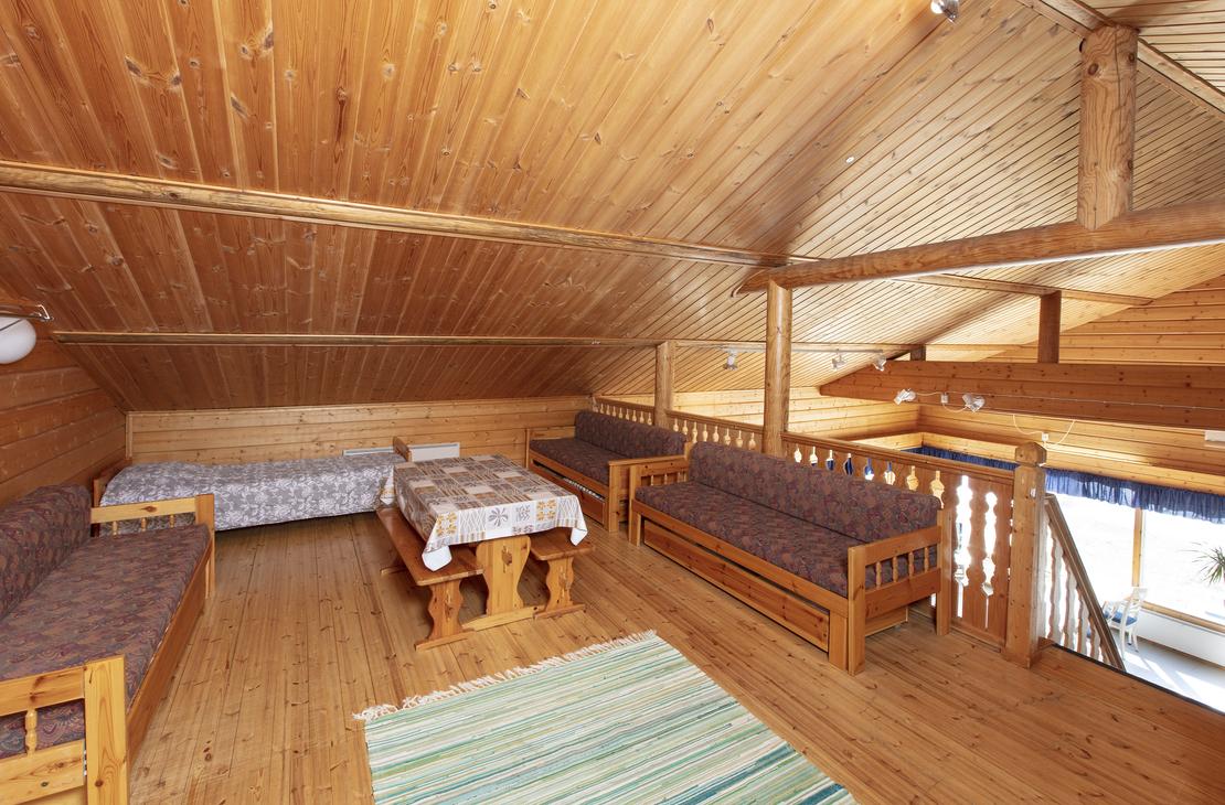 - yläkerrassa parvi (4 vuodetta ja 6 vuodesohvaa, yhteensä 16 vuodepaikkaa)
