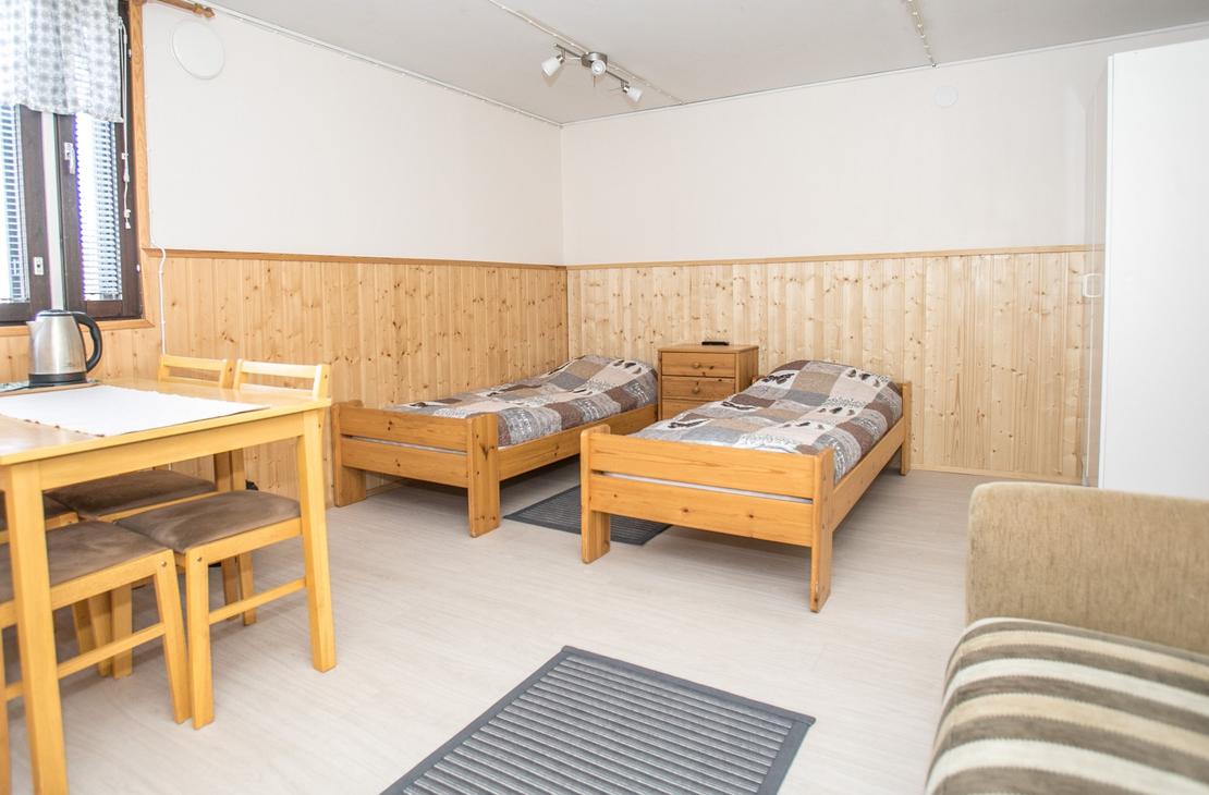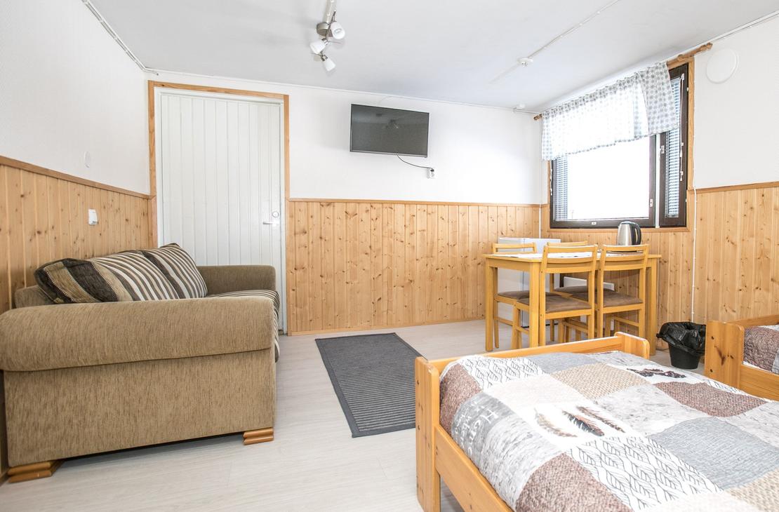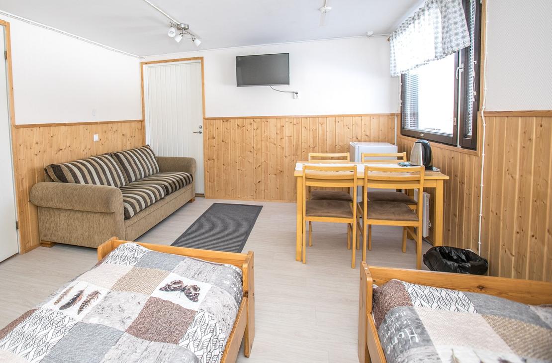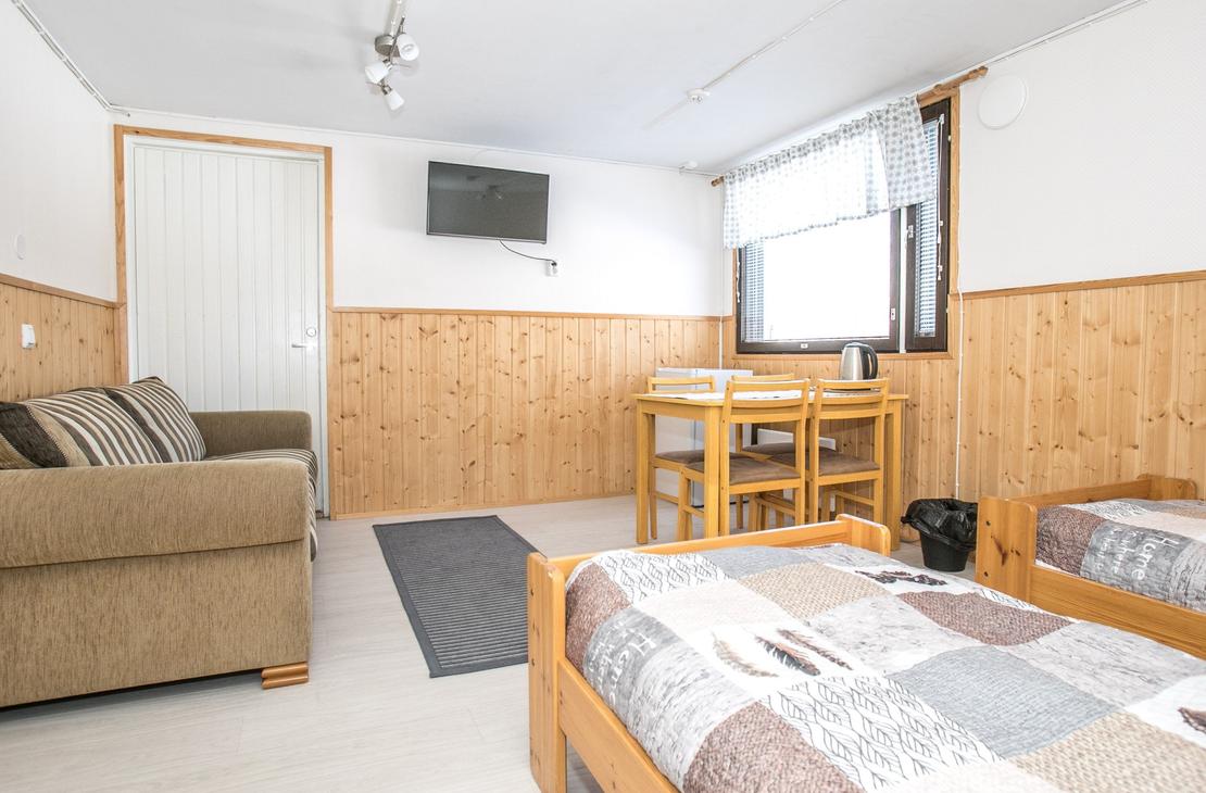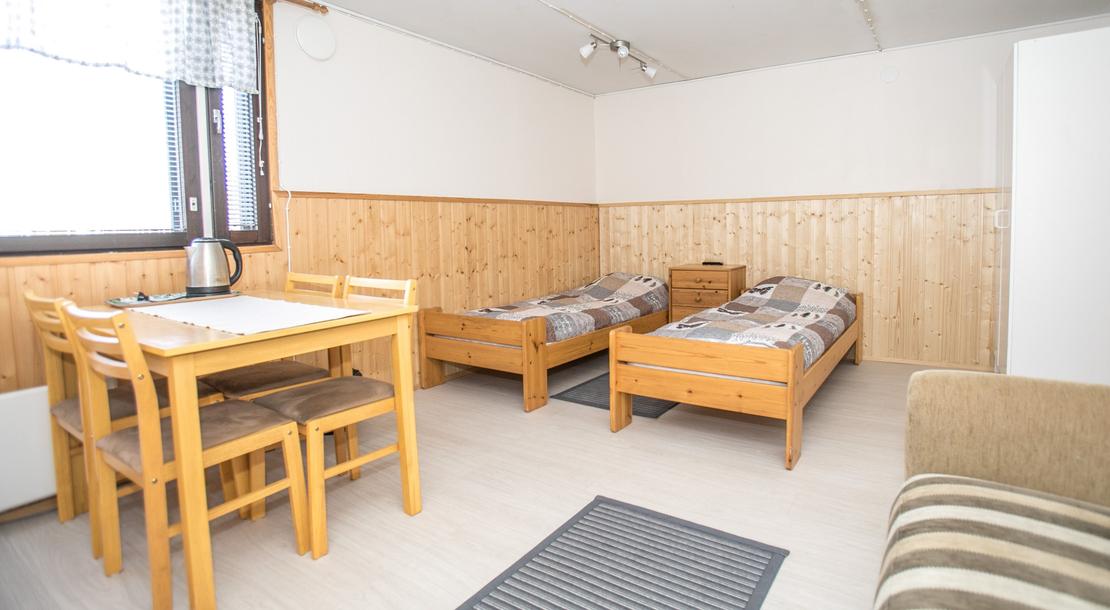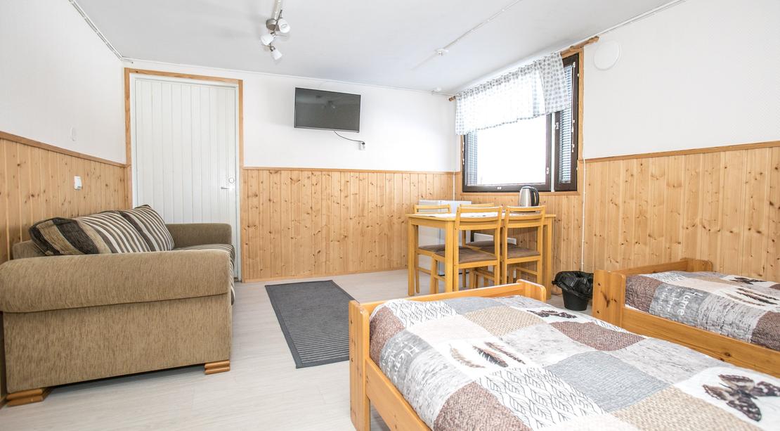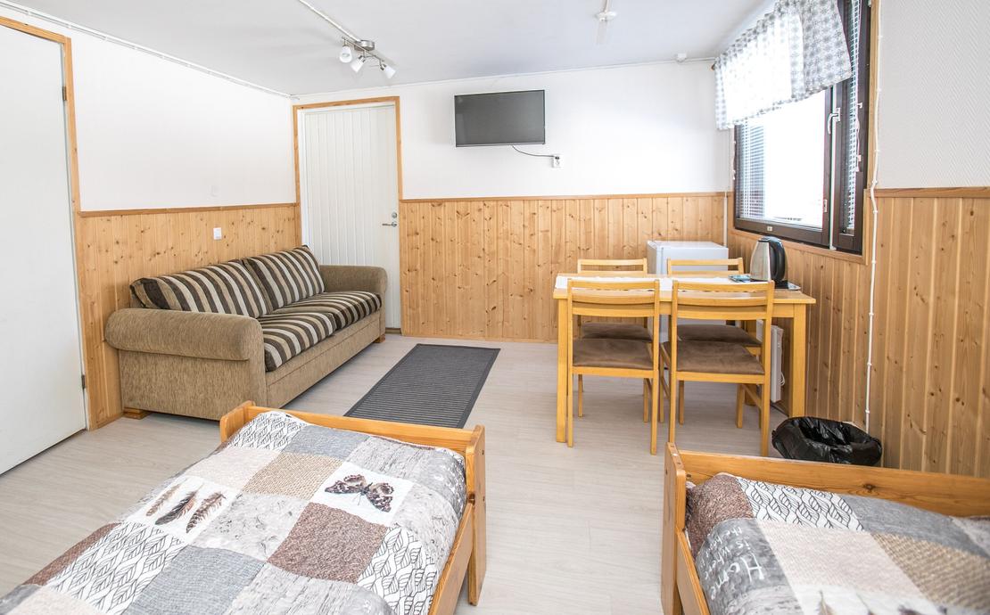 Economy huoneisto Pihatalossa. Vuodepaikat neljälle, oma wc ja TV, jääkaappi ja vedenkeitin huoneessa. Yhteiskeittiö samassa rakennuksessa. Suihku käytettävissä Rantatalolla (n.70m).