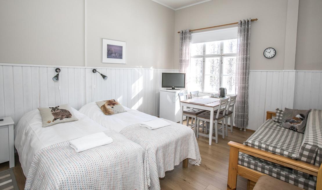Huoneessa on oma kylpyhuone (wc & suihku), TV, vedenkeitin ja jääkaappi. Osassa huoneista mahdollisuus lisävuoteelle 1-2 henkilölle.
